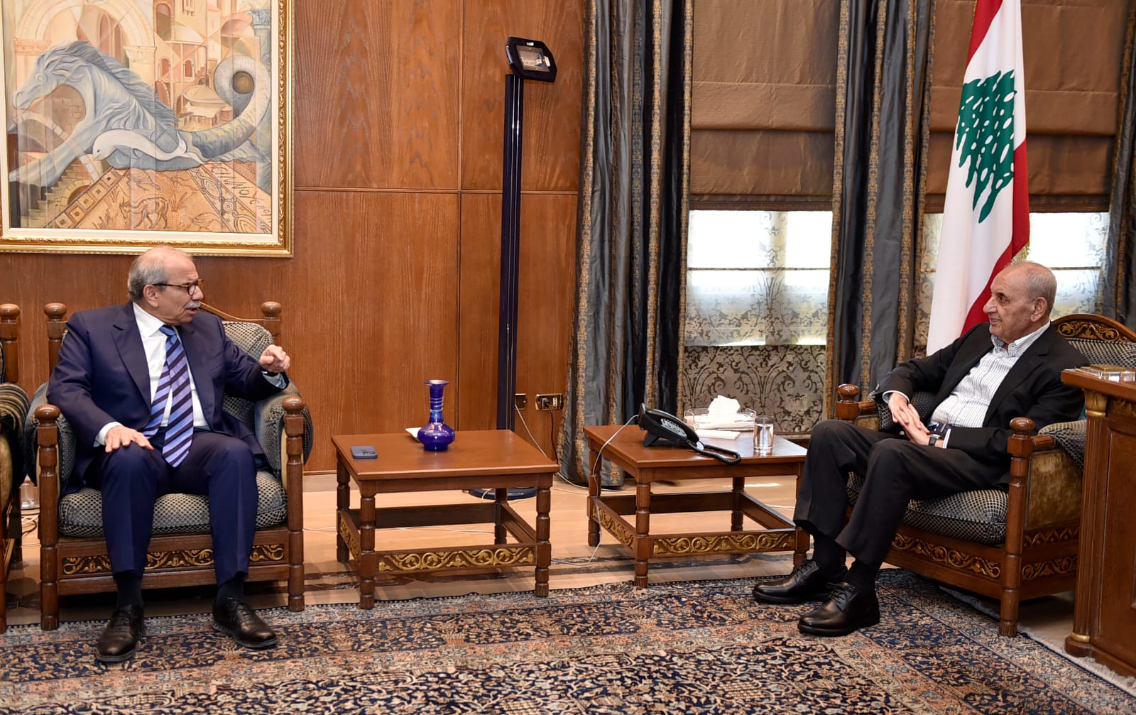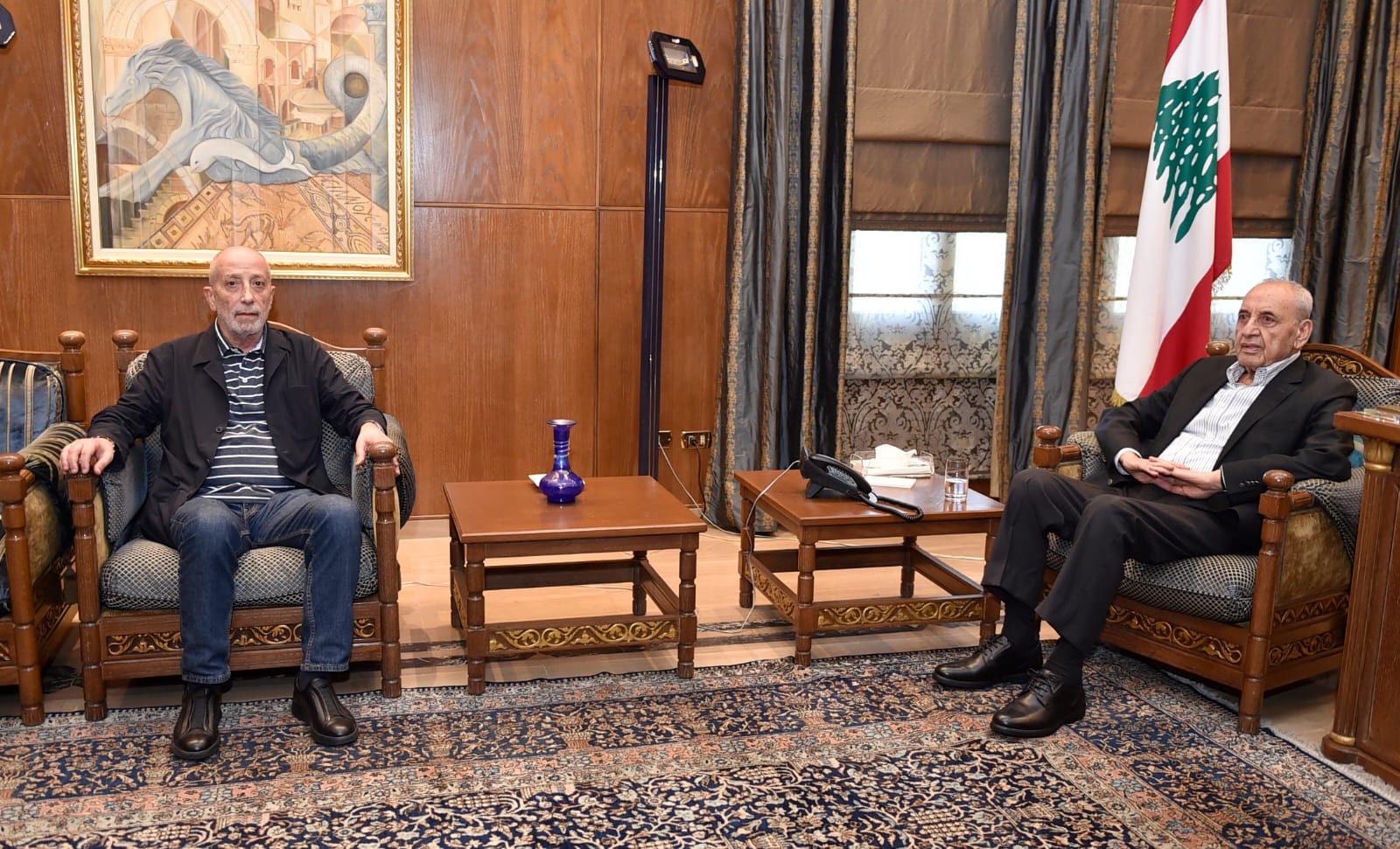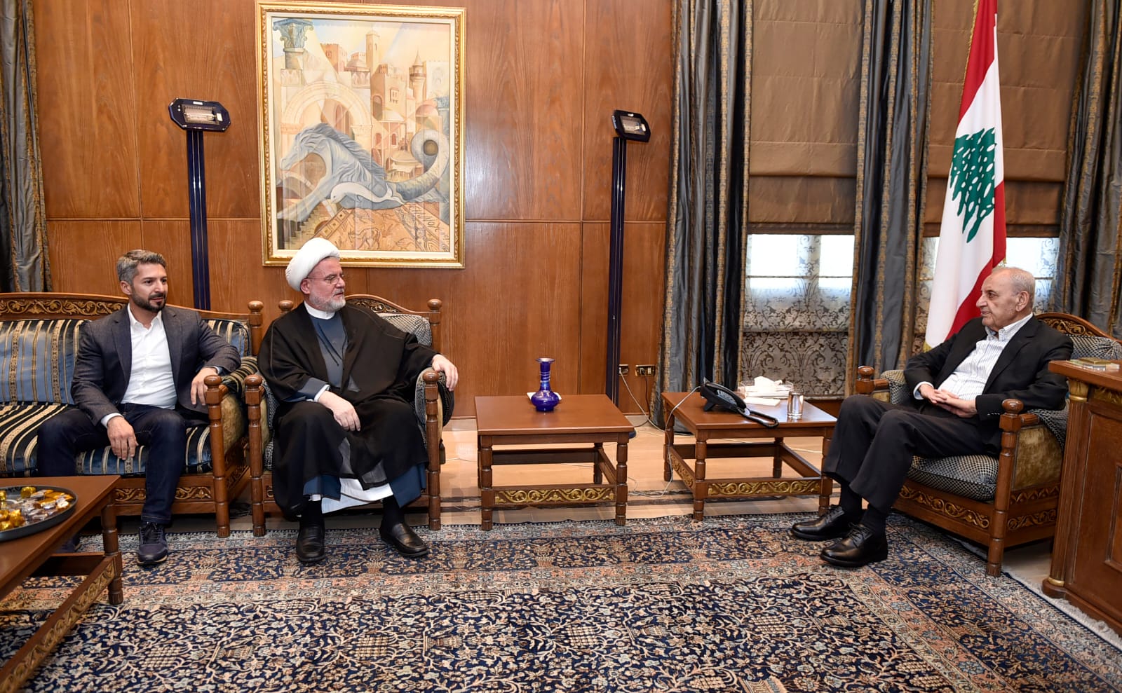 رئيس المجلس إستقبل ايضاً سماحة المفتي الشيخ أحمد طالب بحضور مدير العمليات المالية في مصرف لبنان علي طالب .