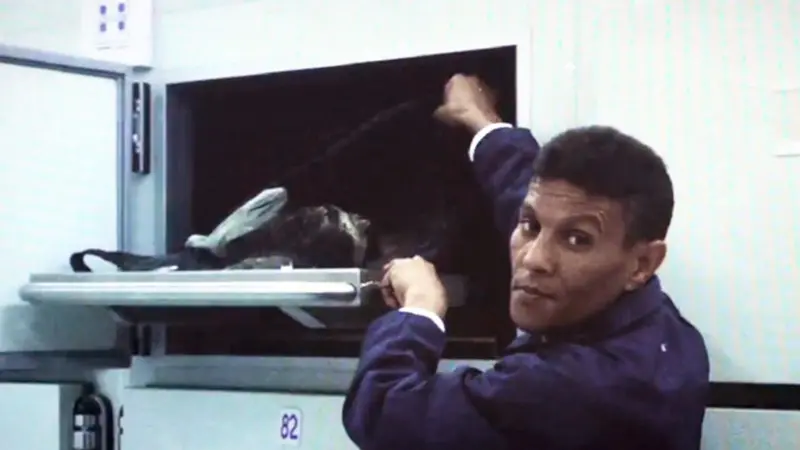 قال قاسم: “ذلك الدرج الواحد، (موظف المشرحة يفتحه)، يكشف الجثة، ولفت انتباهي أمران فوراً”.